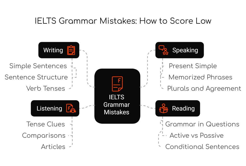 Are you preparing for the IELTS exam but struggling with grammar? If you want to guarantee a low grammar score, just follow the mistakes outlined below.