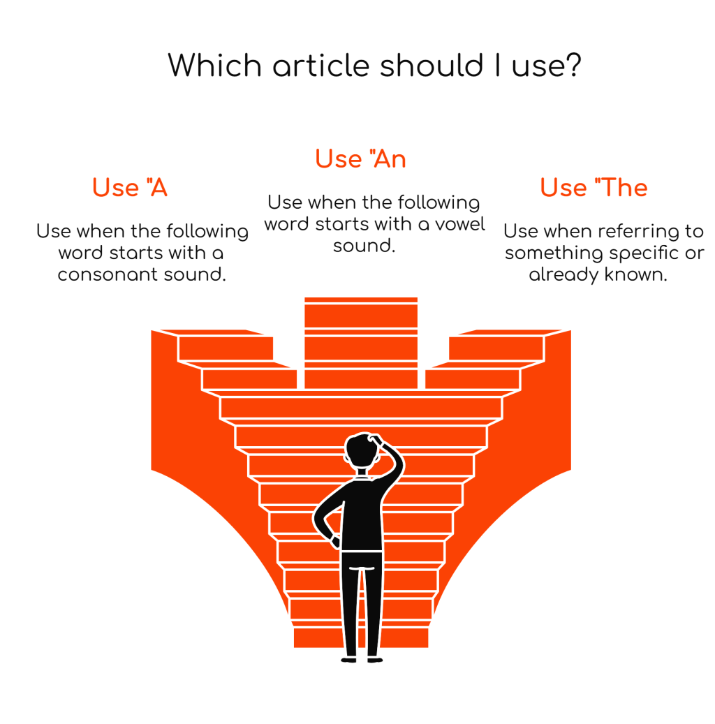 - Indefinite Articles: “A” and “An” (used for general or non-specific nouns)