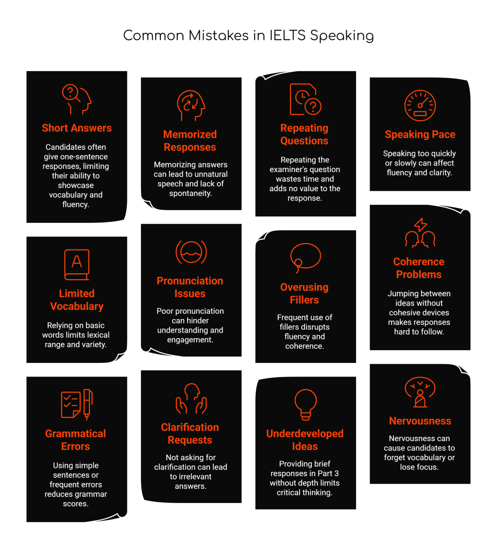 Many IELTS candidates underestimate the Speaking test, believing that fluency alone guarantees a high score. However, examiners assess a range of criteria beyond smooth speech, including lexical resource, grammatical accuracy, pronunciation, and coherence. Understanding and addressing common mistakes can help candidates improve their performance significantly. This article explores the most frequent errors in the IELTS Speaking test and provides effective strategies to correct them.