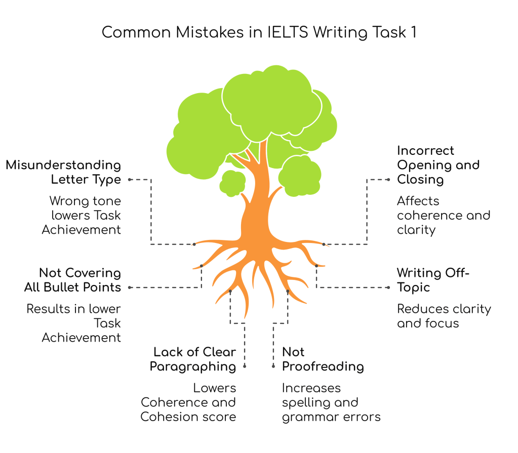 In IELTS General Training Writing Task 1, candidates are required to write a letter in response to a given situation. The letter may be formal, semi-formal, or informal, depending on the context. Many candidates lose marks due to avoidable mistakes that affect their Task Achievement, Coherence and Cohesion, Lexical Resource, and Grammatical Range and Accuracy scores. Below are the most common errors and practical strategies to address them effectively. You can watch this YouTube video explainer by IELTS Guide Phil.