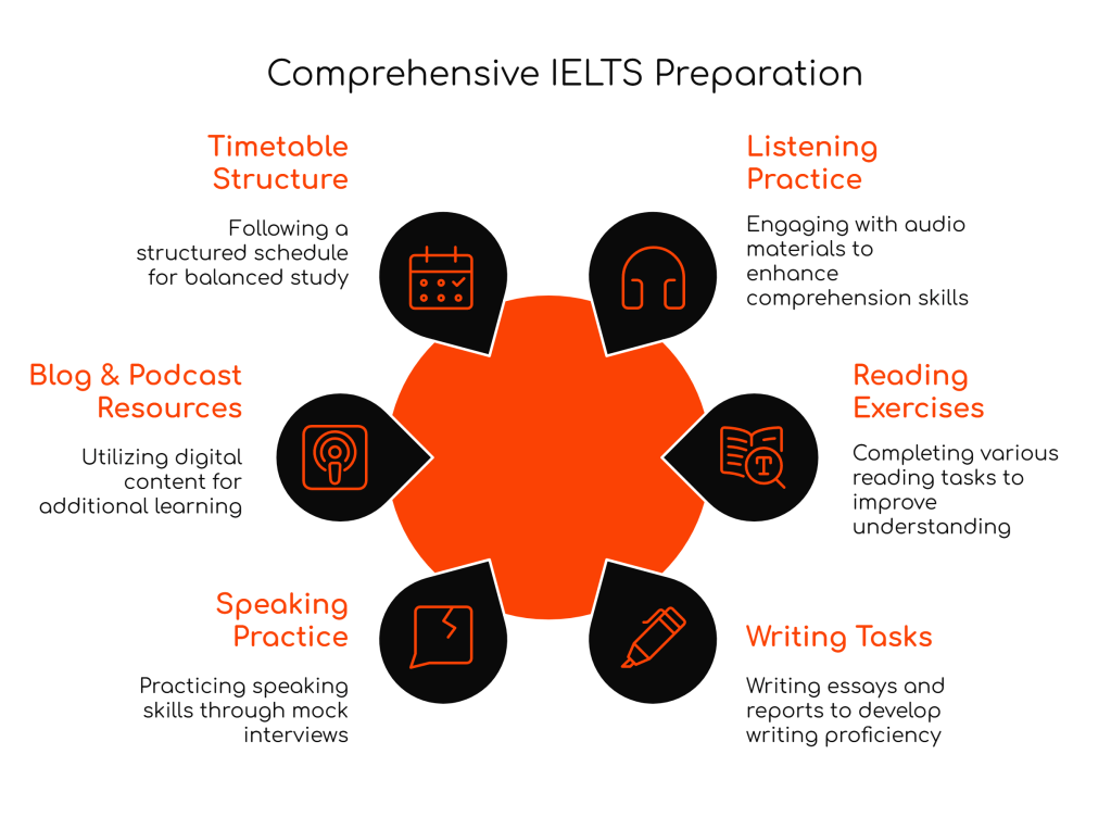| Day 6 | Writing Task 1 (Maps/Processes) & Listening | ✅ Study different map/process structures✅ Practice a Writing Task 1✅ Listen to a BBC podcast & note down ideas✅ Listen to an IELTS Guide Phil podcast episode on Task 1 vocabulary |