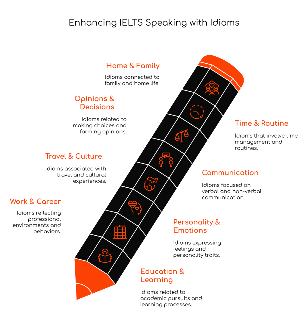 If you’re preparing for the IELTS Speaking test, integrating idiomatic expressions into your responses can significantly boost your score—especially in the Lexical Resource criterion. However, using idioms correctly and naturally is key. Below is a comprehensive and categorized list of 100 idioms, complete with clear definitions and example sentences. These idioms are grouped according to common IELTS topics to help you incorporate them smoothly into your answers.