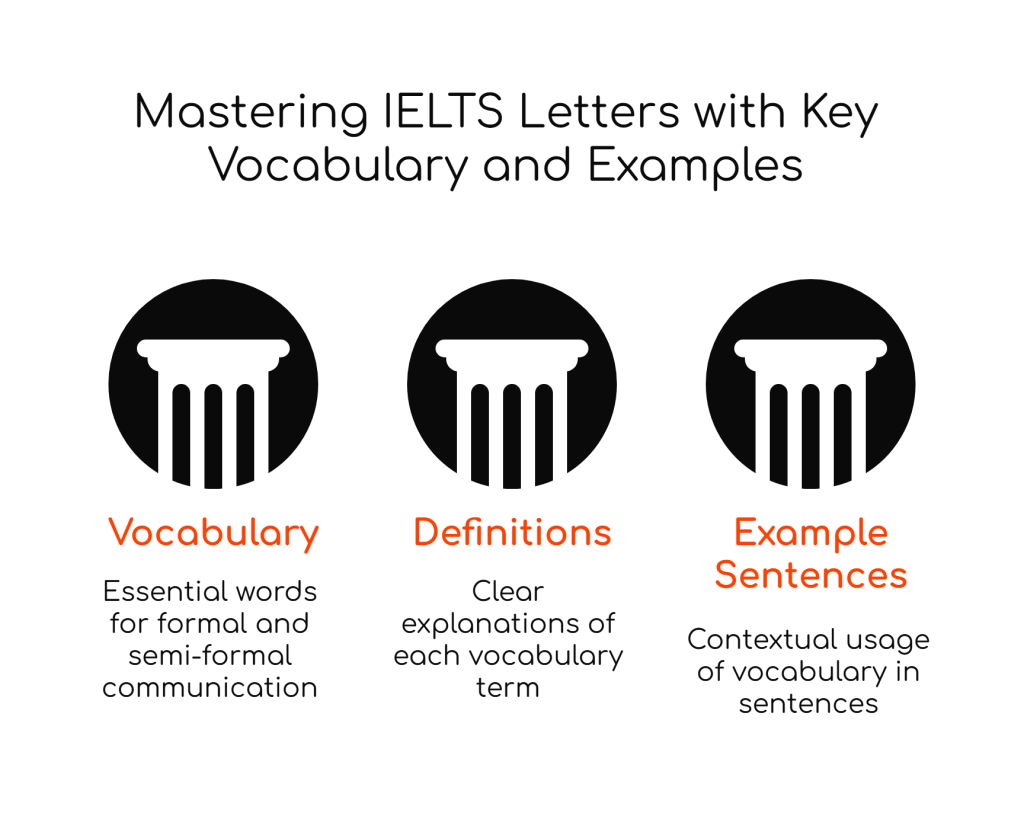 Achieving a high score in the IELTS General Training Writing Task 1 requires the effective use of formal, polite, and precise vocabulary. This task typically involves composing formal and semi-formal letters, which necessitate a strong command of language to ensure clarity, professionalism, and appropriateness. To help you in your preparation, we have curated a list of 100 essential academic words and phrases. Each word is accompanied by its definition and an example sentence to guide you in enhancing your writing skills for the IELTS General Training Writing Task 1.