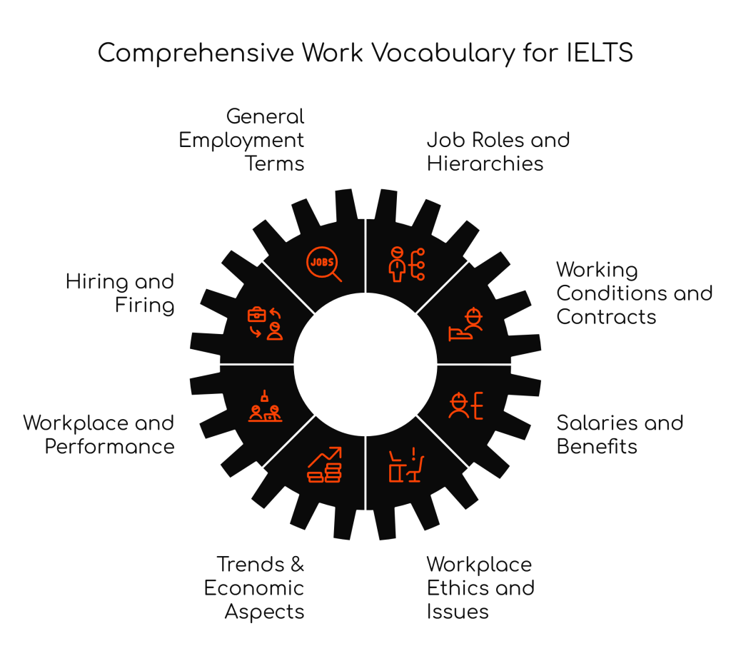 Mastering vocabulary related to work and employment is essential for achieving a high score in IELTS Speaking and Writing. Whether discussing job satisfaction, employment trends, or workplace issues, the right terminology can help you express your ideas clearly and professionally. Below is a curated list of 100 topic-specific words and phrases, complete with definitions and example sentences.
