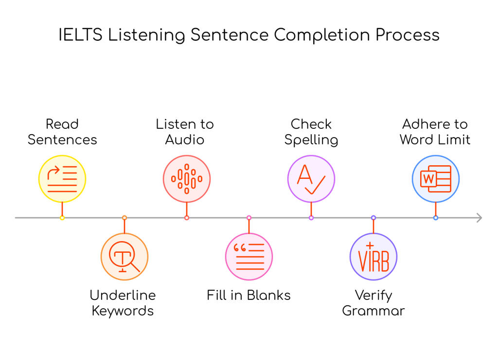 Mastering Sentence Completion in the IELTS Listening test requires strong focus, prediction skills, and attention to grammar. By practicing regularly and familiarizing yourself with paraphrasing patterns, you’ll boost your chances of scoring high in this section.