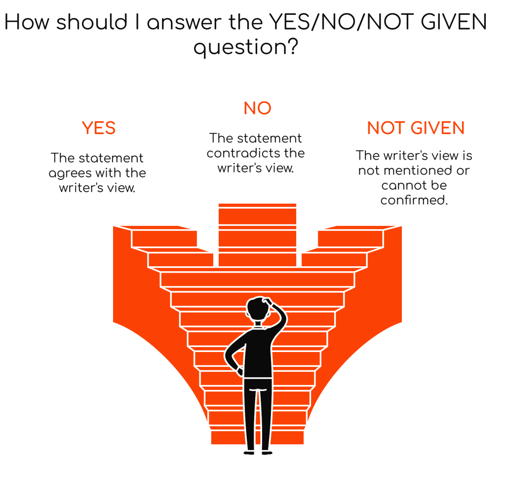 - If you’re unsure and can’t confirm the opinion, choose NOT GIVEN.
