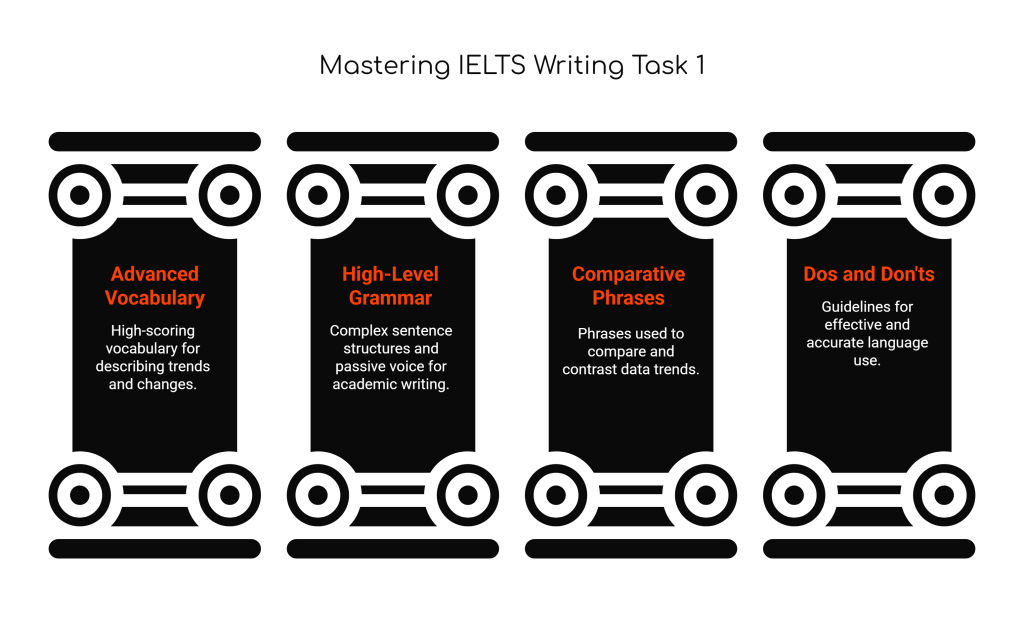 Here is a curated list of high-scoring vocabulary you can use to describe trends, changes, and comparisons: