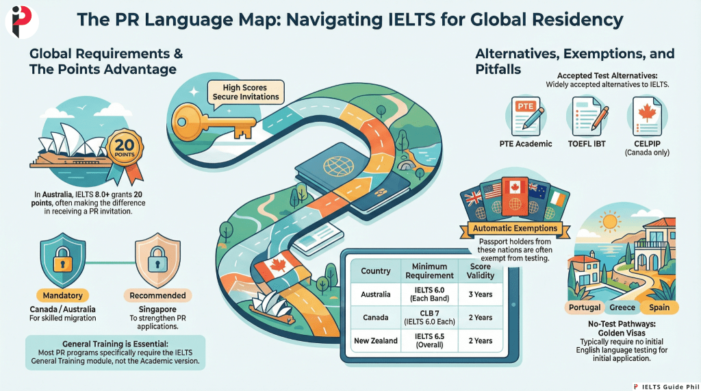 Stop wasting time and money on tests you don’t need—here’s your complete guide to IELTS requirements for permanent residency worldwide.